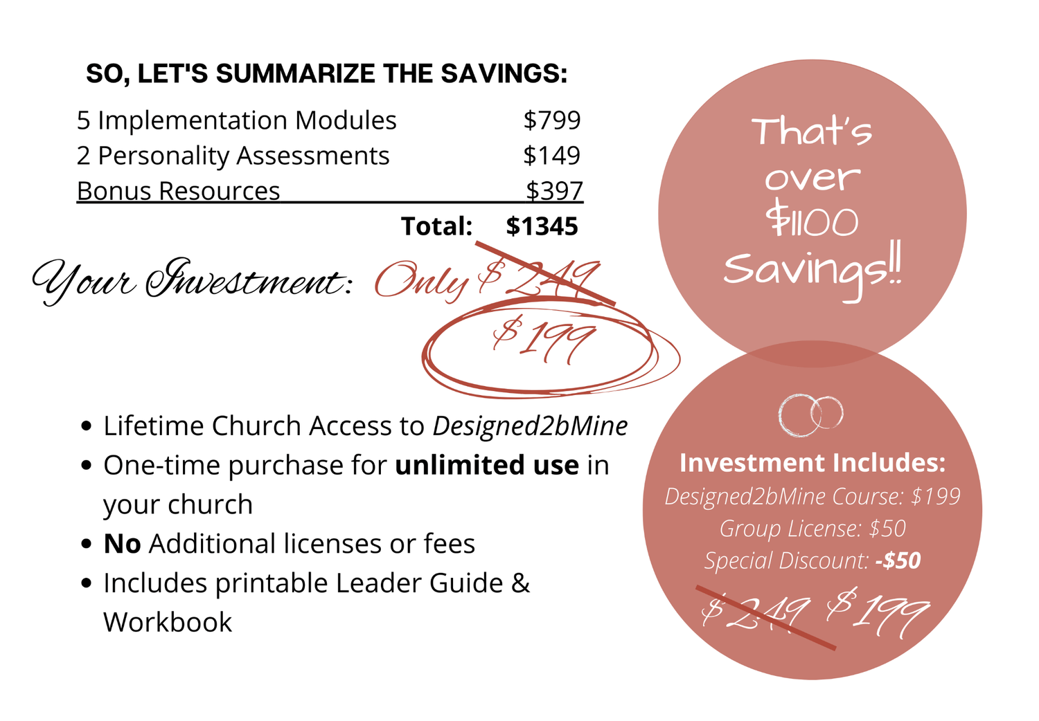 A Designed2bMine with the group license purchase by a church or organization means you can watch this with any groups or Sunday school classes for the lifetime of the course. A login email and password can be shared with couples for counseling purposes. If you desire a couple a couple to have their own login, they will need to purchase the course separately. A 50% OFF COUPON CODE can be received by emailing us from the email used to purchase the group license at email@intimateconnection.org.